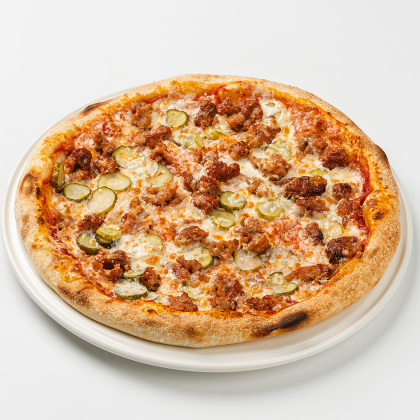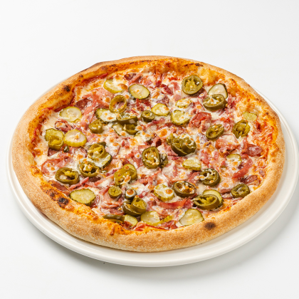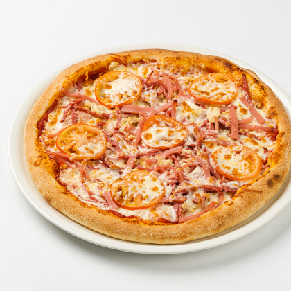 Сытная пицца с тающим во рту куриным мясом и аппетитным беконом, запечёнными до совершенства на золотистом тесте. Сыр моцарелла обволакивает начинку, создавая аппетитную корочку, а лёгкий томатный соус добавляет пикантности.